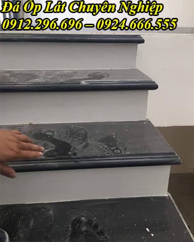 Dùng máy cắt đá để cắt chỉ có chiều dài đúng bằng chiều dài mặt bậc.